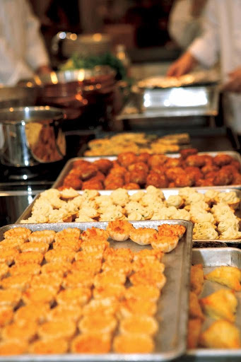 To prepare the crust, lightly flour a work surface and roll out the puff pastry with a rolling pin so it fits a rimmed 11 by 17-inch baking sheet with an ovelap of 1/2 inch on each side. Prick the pastry lightly with a fork and cover with another baking sheet the same size. Weight the top sheet with dried beans or pastry weights. Transfer to the oven and bake for about 20 minutes, or until the pastry is a light golden brown. Remove from the oven; set aside the upper pan along with the beans or weights and reserve the baked pastry crust in the pan.