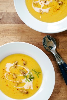 Winter Root Vegetable Potage With Crème Fraiche & Honey Crisped Walnuts 1 Picture