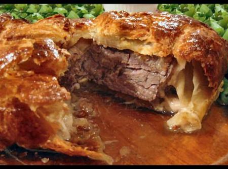 Beat egg with oil, and brush pastry with it. Bake in center of preheated 425ºF oven for 25 minutes for medium-rare. Less if your steaks are thinner or prefer rare. Longer if you prefer medium. Serve with sour cream horseradish sauce if desired.