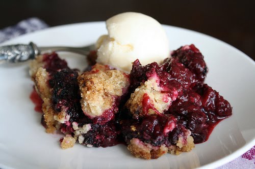 11)Let the cobbler cool slightly and serve with vanilla ice cream.