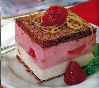 Retirar el molde de la heladera y pasar la mitad de la crema de frutilla.