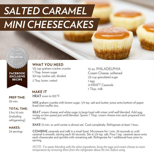 Combine caramels and milk in a small bowl. Microwave for 1 min. 30 seconds or until caramel is smooth, stirring each 30 seconds. Stir in 1/4 tsp. salt. Pour 1 tsp. caramel sauce onto each cheesecake and sprinkle with remaining salt. Refrigerate for 1 additional hour prior to serving.