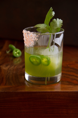 In a sturdy, thick-bottomed pint glass from a Boston shaker, use a bar muddler to crush the cucumber, jalapeño, cilantro, lime juice, and agave syrup until you achieve a fragrant, pulpy mush. Add the tequila, swirl to combine.