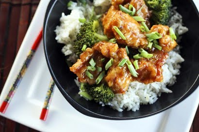 Then slide all of the fried chicken into the prepared sauce and toss to coat. (If desired, add some steamed broccoli to coat with the sauce also.) Increase the heat to medium, stir and cook just until hot all the way through.