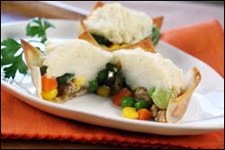 PER SERVING (1/6th of recipe, 2 mini pies): 170 calories, 3g fat, 450mg sodium, 24g carbs, 1.5g fiber, 2g sugars, 10g protein -- PointsPlus® value 4*