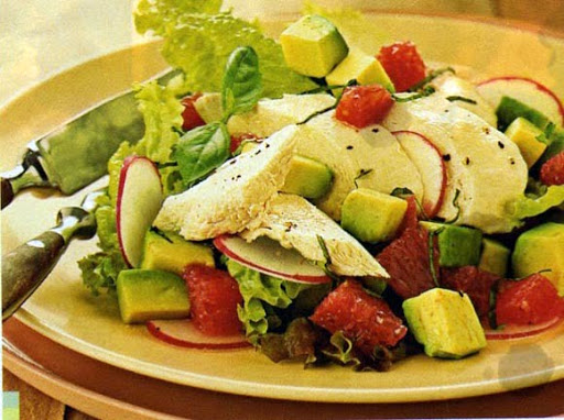 Peel and pith grapefruit. Working with a bowl to catch juice, free each segment from membrane and cut into bite size pieces. Gently toss grapefruit with juice, avocado, radishes, basil and 1/8 tsp salt
