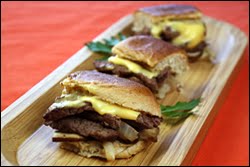 One of the easiest ways to make three perfect slider buns? Cut up a hot dog bun! This version is beefy, cheesy, and Philly-licious!