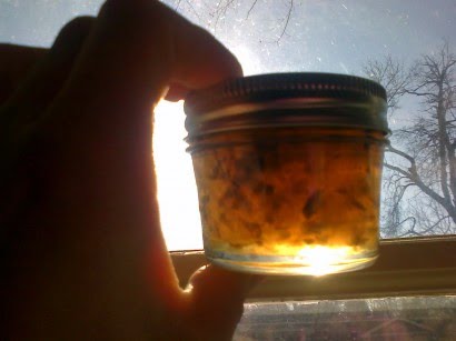 Ladle quickly into hot, sterilized half pint jars, filling to within 1/8 inch of tops.