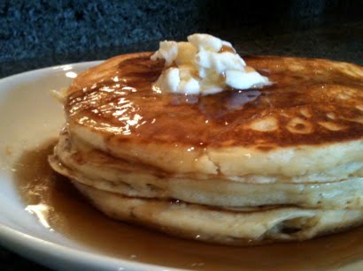 Preheat an electric griddle or heat a non-stick pan over medium high heat. When a small drop of water sizzles and skips across the cooking surface, the pan is ready. Spray lightly with cooking spray. For each pancake, place a scant 1/2 cup of batter onto the griddle surface or non-stick pan. When bubbles appear across the surface of the pancake and the batter begins to look slightly dry, flip the pancake and cook for a few moments longer on the second side. If the pancakes appear to be browning too quickly, turn down the heat.