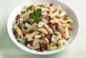 Pasta and Fresh Tomato Sauce with Tuna and Feta