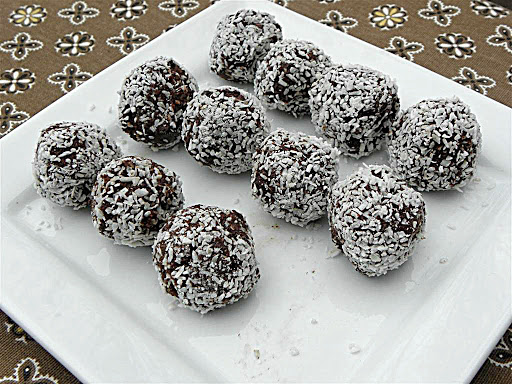 - 1 cup shredded coconut, or powdered sugar, for rolling