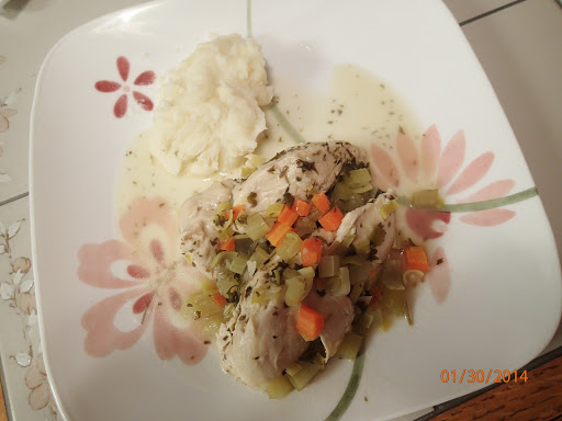 The chicken is very tender and has a great vegetable sauce you put over it.