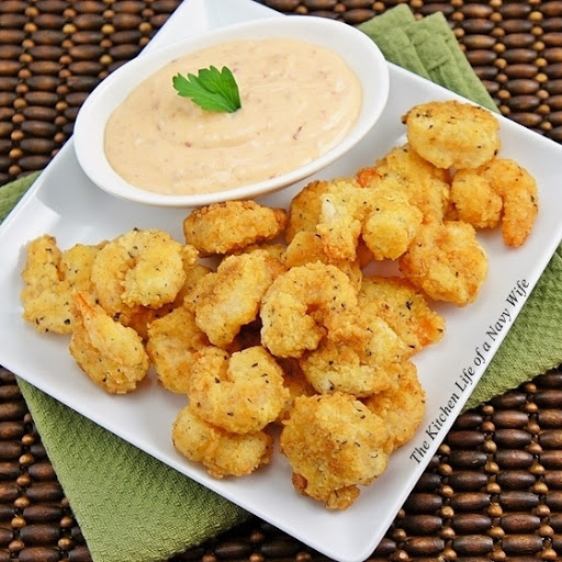 5. Heat 1 - 2 inches of oil in a large deep skillet. Fry the shrimp in batches for 3 to 4 minutes or until golden brown. Drain on a wire rack or paper-towel lined plate.