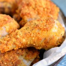 Fried chicken with biscuits topped with honey butter and a dash of hot sauce. Is it breakfast? Lunch or dinner? You pick -- they are great any time of day!