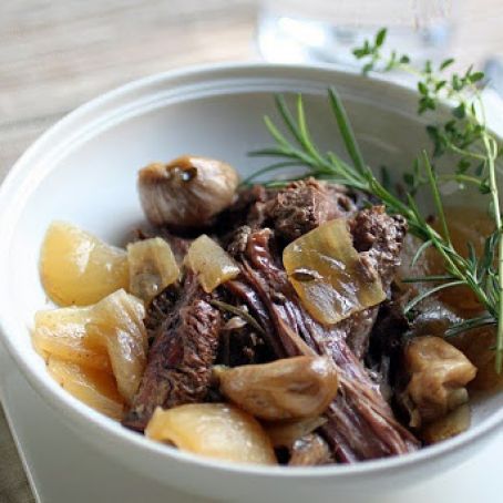 This lamb shoulder simmers all day in a slow cooker to be infused with rosemary and garlic. The meat will be so tender that it will literally be falling off the bone.