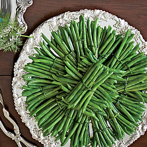 - 1 pound haricots verts (thin green beans), blanched or steamed