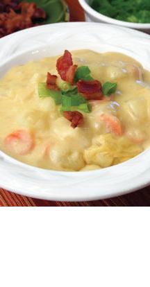 3. Scoop the pulp from the potatoes and add to the soup. Cook again until thick.