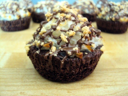 Preheat oven to 350 degrees. Line cupcake pan with paper liners. (Don't skip the paper liners, I did the first time and they all stuck! This recipe makes 24 brownie bites, however I'm only showing 12).