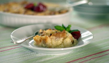 Combine first 6 ingredients; add crumbled biscuits and the raisins, if desired, stirring well. Spoon into a lightly greased 9-inch square pan. Bake for 40 minutes or until a knife inserted in center comes out clean.