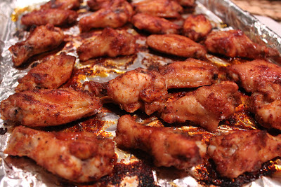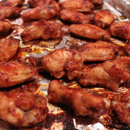 In a large bowl, mix together all ingredients except wings. Add wings and mix with your hands so the wings are coated with the spice mixture.