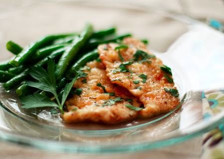 Reduce the heat to low and add the shallots to the pan. Saute for 1 to 2 minutes or until they begin to turn translucent. Add wine and lemon juice to the pan and simmer until slightly reduced, about 2 minutes. Add remaining 2 tablespoons butter and whisk to combine. Season with salt and pepper, to taste, if necessary. Pour sauce over turkey, sprinkle with parsley, and serve immediately.