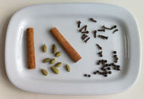 Bring two quarts of water to a boil. Add cloves and boil one minute. Add cardamom, peppercorns, cinnamon, and ginger. Cover and boil for 30 minutes. Reduce heat and simmer for two to three hours. Remove from heat, add black tea, and let cool. Strain and store in the refrigerator. Reheat when you want a cup and add milk and honey to taste.