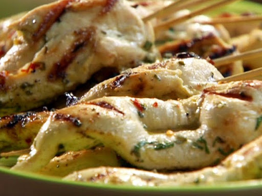 While skewers cook, combine yogurt with juice of remaining lemon, remaining clove of garlic, grated cucumber, cumin and salt, to taste. Divide the dip among 4 ramekins.