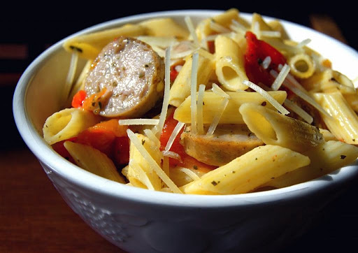 Penne with Roasted Peppers & Sausage