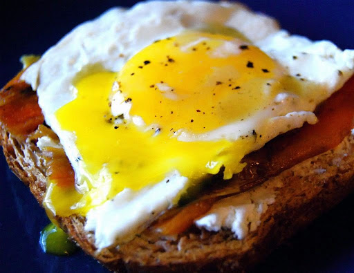 I love the combination of peppers and eggs. Both of my Nanas would often make this dish but it took the form of a scramble. In any form I love peppers and eggs. On top of a toasted slice of whole wheat bread I spread some goat cheese. On top of the cheese I placed a big slice of roasted pepper. On top of the pepper I slid a fried egg. Salt and pepper and a couple shakes of green Tobasco and I was set. So easy. So delicious. So satisfying.