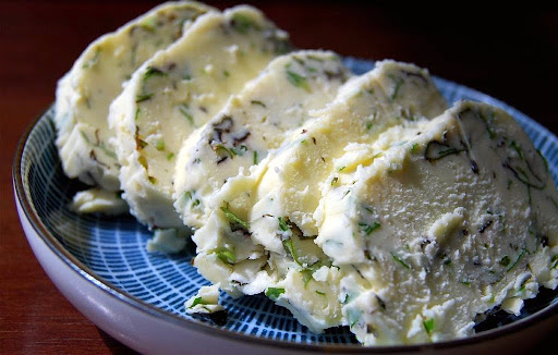 This is a very easy way to dress up butter. Use your favorite herbs in quantities that suit you. Use salted or unsalted butter.