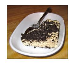 Press crushed cookies into the bottom 9x13-inch pan, reserving some for topping. In a medium bowl, beat together the cream cheese and powdered sugar. Stir in the peanut butter until well blended. Fold in the whipped topping. Spread mixture over the crushed cookie base and sprinkle the remaining cookie chunks on top. Freeze 1 to 2 hours. Thaw 10 to 15 minutes before cutting and serving.