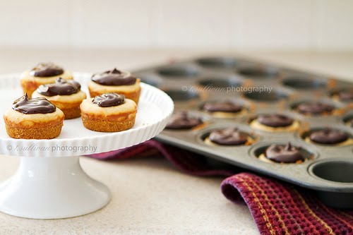 Combine graham cracker crumbs, cinnamon and sugar in a food processor. Pulse to combine. With food processor running, drizzle in melted butter until mixture resembles wet sand. Divide evenly among muffin cups (about 1 tablespoon each). Press crust down firmly. (I used the bottom of a shot glass to get them nice and flat and compact!)