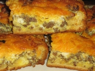 Press croissant dough in the bottom and sides of a 8x8 pan. Brown 1 lb. of breakfast sausage. Whip 5 eggs together and season with salt and pepper. Sprinkle cheese on top. Bake until the eggs are done on 350 (about 15-20 minutes). Cut and enjoy! No fork needed.