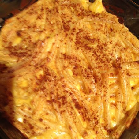 4. Pour pasta mixture into a 13x9 pan and dust with paprika