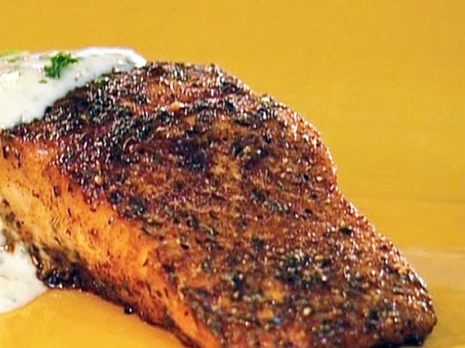 BLACKENED SALMON WITH BLUE CHEESE SAUCE {big daddy}