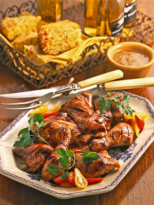 Instead of chicken quarters, you can use meaty chicken pieces. Whichever you choose, the honey-mustard-bourbon marinade will give a sweet mellow flavor to grilled chicken.