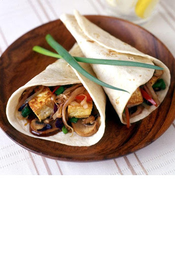To serve, heat tortillas as package directs. Spread each tortilla with about 2 teaspoon of hoisin sauce and top each with about 1/2 cup of tofu mixture. Roll up and fold in 1 end of tortilla to seal in mixture.