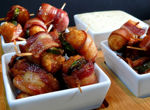 Bacon-Jalapeno Wrapped Tater Tots with Jack Cheese Dipping Sauce 1 Picture