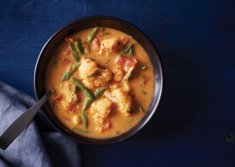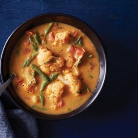 Thai red curry paste provides the spicy base for this soup. Feel free to substitute whatever vegetables you have on hand for the cauliflower and green beans.