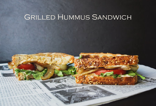 Grilled Hummus Sandwich + Sautéed Onion, Tomato & Arugula