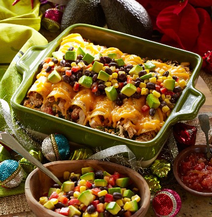 Chicken Enchiladas w/Black Bean, Avocado & Corn Salsa