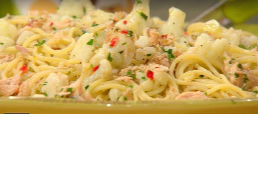 Cook the pasta to al dente, adding about 1/2 cup pasta cooking water to the tuna mixture. Drain the pasta and add to the tuna mixture along with the parsley leaves and cauliflower. Toss and season with sea salt to taste.