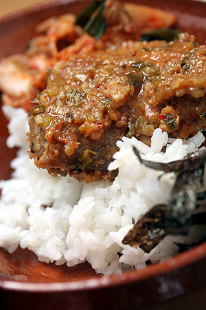 Serve with rice, kimchi, toasted nori, or any other accompaniments. Also good with a pile of steamed green beans drizzled with sesame oil and toasted sesame seeds sprinkled on top.