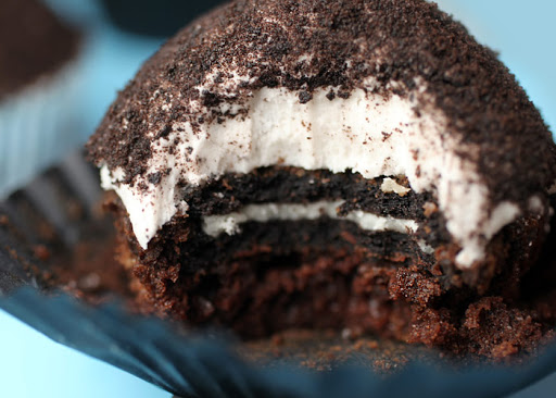 You can also apply frosting on each cupcake in a mounded shape. Turn upside down and roll the top around in a small bowl of cookie crumbs to cookie crumbs to coat.