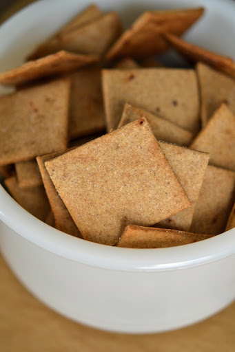 Place the baking sheet in the center of the preheated oven and bake, rotating once during baking, for about 9 minutes, or until the crackers are golden brown around the edges. Allow to cool completely on the baking sheet. Store in a tightly sealed glass container at room temperature. For best results, serve within 2 days.
