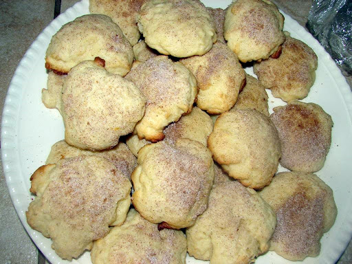 With the glass coated in sugar, lightly tap down each ball of dough on the sheet leaving a dusting of cinnamon sugar on the cookie. Continue with remaining dough. I sometimes use a spoon and sprinkle just a little more cinnamon sugar on each one as well.