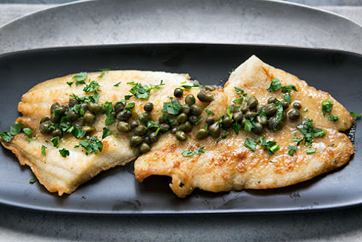 * Saute shallots for a minute or two. Add grapes, wine, and butter to same skillet. Bring mixture to boil, whisking up any browned bits. Add capers and parsley. Simmer sauce until slightly thickened, about 3 minutes. Season to taste with salt and pepper. Spoon sauce over fish.