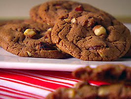 In another medium bowl combine the butter, chocolate hazelnut spread, sugar, and brown sugar. Using an electric mixer, cream the ingredients together, about 4 minutes. Add the egg and vanilla and beat until smooth, about 1 minute. Using a wooden spoon or rubber spatula, stir in the flour mixture until just combined. Add the hazelnuts and stir until just combined.