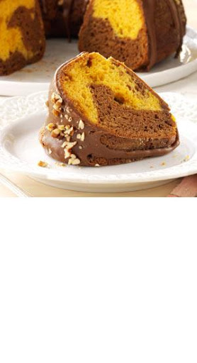 Spoon half of the butterscotch batter in a greased and floured 10-in. fluted tube pan; top with half of the chocolate batter. Repeat layers. Cut through batter with a knife to swirl.