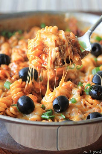 Top pasta with additional cup of cheese and melt under broiler for a minute or tow, or place lid back on pan and let heat from the pasta melt the cheese.